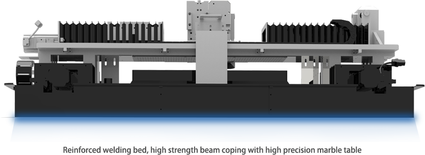 2.Reinforced welding bed, high strength beam coping with high precision marble table, ensure high dynamic of the machine system